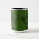 A tiny froggy on a mushroom drawing on a mossy green background.