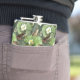 Frogs green and white water lilies pattern hip flask