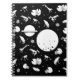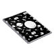 A funny, science fiction frog illustration. A black and white pattern of frogs in space.