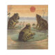 Vintage Frogs sitting on Lily Pads during Sunset and the Moon - This vintage frog illustration is based on an antique frog painting that was published in a book in the late 1800s. The group of vintage froggies are sitting around, doing what all good Victorian frogs do -- lazing on their lily pads waiting for the sun to set. These little frogs are cute, and so old-fashioned! The vintage frog illustration is the perfect gift for your loved ones who collect frogs and want to have some frog gifts that they've never seen before. This unique frog gift is perfect! The frogs are waiting for the sun to set, before they start singing their cute froggy songs or the evening.