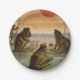 Frogs Lily Pads Moon Illustration Paper Plate