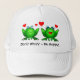 Green cartoon frogs, red hearts, cute, funny and expressive - don't worry, be hoppy! You can get this hat in other colour combinations as well.