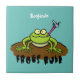 Frogs rule funny green frog cartoon tile