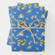 All occasion wrapping frogs on blue. The frogs are done in watercolor.