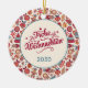 This fabulous Christmas folk art cream round ceramic ornament with a pattern of santas, gingerbread men, Christmas trees, ornaments, angels and presents that says Merry Christmas in German "Frohe Weihnacten" and has the year would look awesome on your Christmas tree. It's so festive and will go with any Christmas decor - it's rustic yet retro and modern yet traditional! Get some as gifts for loved ones...they'll love it!