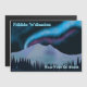 Purple and blue northern lights glow over snow-covered mountains on a cold night in Alaska. German text reading, "Fröhliche Weihnachten" appears in glowing blue and white. Add your own additional text.