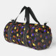 Frolf - Flaming Disc Golf duffle bag. A bag with background of chains with flying flaming discs in red, blue and yellow colours. A great duffle bag for someone that is a Frolf fan.