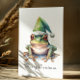 Send a splash of holiday cheer with our enchanting "Frolic Christmas Frog" postcard! This delightful design features a charming watercolor green tree frog, merrily adorned in a festive green Santa hat. With its bright, expressive eyes and joyful demeanour, this little amphibian is ready to bring smiles to friends and family this holiday season. Perfect for quick greetings, spreading festive vibes, or adding a unique touch to your Christmas correspondence. The smooth, high-quality card stock ensures your message looks as good as this cheerful frog feels.