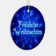 A swarm of blue fractal snowflakes. German text reading "Froliche Weihnachten" appears in glowing blue and white.