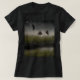 On a starry night crows fly about the celestial sky in the mist of a swamp on a unique nature inspired tee.