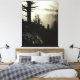 In this hazy mountain woodland artwork dew, drizzle, and fog evoke a sense of moisture blurring the trees in the distance. The monochrome palette suggests wilderness, a path less followed, and a sense of wanderlust and exploration.