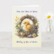 Send warm Easter wishes from your home to theirs with this beautifully illustrated card. A delicate spring chick nestled in a floral wreath is surrounded by soft pastel blooms and decorated eggs. The thoughtful message conveys heartfelt warmth, appreciation, and the blessings of the season — perfect for sharing across the miles or close to home.