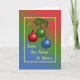 Christmas card with ornaments and holly. From Our House To Yours. Customisable inside message.
