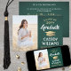 Share the joy of a high school or college graduation with these custom photo green, gold and white announcements. (IMAGE PLACEMENT TIP: An easy way to centre a picture exactly how you want is to crop it before uploading to the Zazzle website.) This template is simple to customise with any wording of your choice, such as party invitation details, parents' names, special honours, degree title, favourite inspirational quote, graduate's contact info, future education plans, or new job position. If there's any text not wanted simply delete it. Design features a green ombre background, faux gold foil mortar board cap, handwritten style script calligraphy, modern minimalist typography, and one photo of your choice, such as a senior picture or image from the commencement ceremony. Please note that gold is printed colour, not metallic foil. These elegant graduation announcement cards are a trendy and chic way to share your special day celebration with family and friends. Congratulations to the graduate!