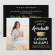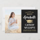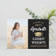 Share the joy of a high school or college graduation with these custom photo black, gold and white announcements. (IMAGE PLACEMENT TIP: An easy way to centre a picture exactly how you want is to crop it before uploading to the Zazzle website.) This template is simple to customise with any wording of your choice, such as party invitation details, parents' names, special honours, degree title, favourite inspirational quote, graduate's contact info, future education plans, or new job position. If there's any text not wanted simply delete it. Design features a faux gold foil mortar board cap, handwritten style script calligraphy, modern minimalist typography, and one photo of your choice, such as a senior picture or image from the commencement ceremony. Please note that gold is printed colour, not metallic foil. These elegant graduation announcement cards are a trendy and chic way to share your special day celebration with family and friends. Congratulations to the graduate!