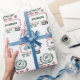 Additionally, a black rectangle stamp with white text reading “NICE” indicates that the recipient has been deemed ‘nice’ this year. A few red snowflakes complete the festive look. This wrapping paper is perfect for all ages, making it a delightful choice for anyone looking to add a whimsical and personalised touch to their Christmas gifts.