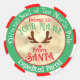 These festive custom stickers feature an outer frame with swirled a red and white peppermint candy cane design. The special phrase "Official Seal of the North Pole" is printed at the top, over a green circle. A custom name is printed at the top which you can personalise to include your own child's name or recipient. "From Santa" is printed in the bottom portion with the letters in the name "Santa" printed in a Christmas style font over a faux gold foil background. Expedited Parcel is printed below. Rudolph the reindeer antlers and red nose are printed in the back.