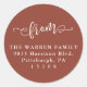 From script classic terracotta return address round sticker
