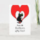 Thank You paper greeting card features a black cat with big green eyes holding on to the bottom of a large red heart. Cute digital illustration perfect for a special Thank You. Image and verse copyright © Shoaff Ballanger Studios.