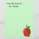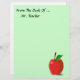 Easily personalise this custom letterhead stationery From The Desk Of... with any name. Or, just leave out the text entirely. One red apple with green leaf illustration on the bottom corner. Lots of copy space to write on later. Background shown is a light green which can easily be changed. Just click on customise, and then click on "colours" to change it. Great personal gift idea for teachers, doctors, nurses, health nuts, etc.
