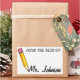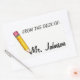 Design features an original marker illustration of a sharp yellow #2 pencil with a pink eraser. Simply personalise with your teacher's information.