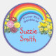 Adorable customisable labels have a bright rainbow, pretty bunches of flowers and a sky blue background. Text reads From the Garden Of... and you complete the rest!