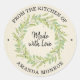 Elegant floral wreath of greenery on pale ivory stripes plus your name and From the Kitchen of in chic lettering, use these stickers for food, party favours or anything! MATCHING items in our store.