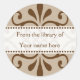 A brown flourish design on a beige background makes this bookplate unique and attractive.