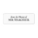 Celebrate and organise with our Custom From the Library of Teacher Book Labels. Designed to add a personal touch, these labels are perfect for teachers to mark and identify their classroom books effortlessly. Made from durable, high-quality adhesive material, they stick securely and are easy to remove without damage. Customisable with your teacher name or personal message, these labels help promote organisation, preserve book ownership, and add a professional look to your classroom library. Ideal for teachers, educators, and school librarians, these labels are a practical and stylish solution for classroom management and personalisation.