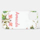 Elegant botanical arrangement of pink flowers, leaves and fronds.