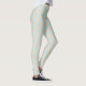 Front and back view of leggings with a blue, white