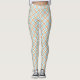 Front and back views of leggings featuring a colorful plaid pattern with orange, blue, and white tones. Paired with black sneakers on a neutral background.