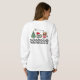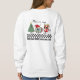Get cozy for the season with this Christmas Movie Night sweatshirt, the perfect shirt for anyone who lives for December film marathons. This adorable retro design features a happy Christmas tree, a vintage TV in a Santa hat, and a cool popcorn bucket in shades, all dancing over a fun checkerboard strip on the back, and a compact vintage style tv wearing a red Santa Hat and dancing shoes with your customized name on the front pocket area.