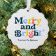Celebrate the holidays in style with this trendy “Merry and Bright” Christmas ornament card. Featuring bold retro typography and a festive colour palette, this design includes a stylish photo placeholder to showcase your favourite family moment. Perfect for sending warm greetings that double as a keepsake ornament, this card is both thoughtful and on-trend. Ideal for family, friends, or loved ones who enjoy holiday cheer with a modern twist.