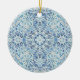 This ornament features a beautifully detailed snowflake pattern inspired by frosty winter mornings. Soft shades of ice blue, white, and silver blend together to create an intricate, lace-like design that feels both elegant and peaceful. The repeating snowflake shapes form a radiant mandala, giving the ornament a delicate sparkle and a sense of quiet winter magic.