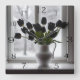 "Frosted Elegance: Black Tulips in a White Vase Square Wall Clock