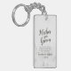 Frosted Pines Rustic White Mountain Range Snowy Winter Design with Hand Painted Pine Trees, Watercolor Paper Texture Background, and White Grey and Black muted colour palette. Perfect for a winter wedding, or outdoor lodge venue With modern chic brush script fonts, and simple minimalist background - Mother of the Groom Heartfelt Quote Keepsake Keychain!