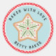 This baked with love sticker features a star gingerbread cooke design with an aqua background and a red and white polka dot outer border. Coordinates with the Christmas Cookie Exchange collection.