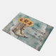 Gold sunflowers peek out of the top of the cowboy boots on this unique and rustic looking welcome door mat. The watercolor images are placed on an abstract teal and wood panel background. A frost overlay gives the scene a weathered look. Your custom text is in brown in two fields at the right side of the boots image. Be sure to see the matching products in our store.