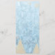This elegant and festive dining menu features a white background in the centre with a blue frosty ice pattern in the top and bottom portions. A winter theme printed in an ivory white faux glitter design. Pine trees are featured near the bottom of the menu and several snowflakes are scattered around the background. The text is printed in an elegant and sophisticated font font which you can personalise to include your own dining options.