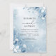 Delicate white blossoms are scattered across a soft, misty blue watercolor wash. This design evokes a serene and elegant atmosphere, perfect for a romantic occasion. The gentle wash creates a dreamy, ethereal backdrop.