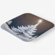 Frosty pine tree with glowing star and white bunny.
