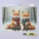 In a serene winter forest, a pair of graceful foxes sits quietly amidst the soft, white snow. Their rich fur contrasts beautifully with the tranquil landscape, where snowflakes gently fall from the frosted trees. This enchanting design captures the essence of winter tranquillity and the bond between these elegant creatures.