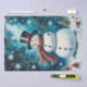 Bring the heart of winter to your creations with Frosty Night Snowman, a joyful holiday design bursting with painterly charm and frosty sparkle. Set against a deep teal night sky filled with snowflakes, this cheerful snowman wears a crimson scarf and top hat while tiny Christmas trees and ornaments dot the snowy landscape around him.