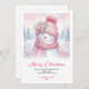 Celebrate the season with this cute watercolor pink coquette snowman kids Christmas card, set in a magical snowy forest. Editable text lets you personalize instantly, and the digital download provides an easy, fast, and festive holiday greeting.