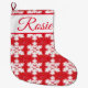 Frosty red North Pole snowflakes | sparkling snow Large Christmas Stocking