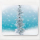 Beautiful blue and silver Holiday abstract pine tree design with snowflakes and twinkle lights.