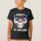 The t-shirt feels and looks great quality, a good thick cotton. It will be a little big for my son, but that means he will be able to wear it and not out grow it too soon. The print was as described on the order when personalised. True size, shape and colour T-shirt- thanks.