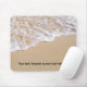 Frothy ocean saltwater on beach sand with inspirational quote.