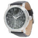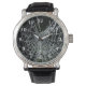 Watch with photo of cobweb covered in frost / ice, with green holly foliage in background
